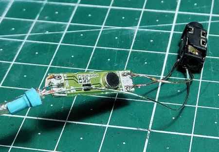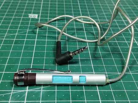 припаял гнездо и шнур к пульту, вырезал в алюминиевом корпусе карандаша отверстия под кнопки