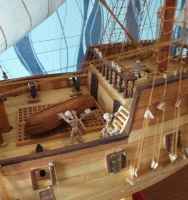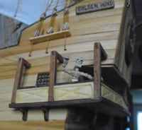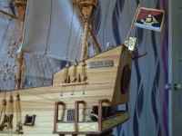 Когда я увлекся изготовлением этой модели, я понял, что мне скучно строго следовать чертежам и образцам. Хотелось сделать так, чтобы люди смотрели и улыбались, и им хотелось посмотреть на это еще раз. Все художественные элементы на корабле: скульптуры, герб на корме, рисунки на флагах, фигурки скелетиков - мое личное творчество. Аналогов в интернете не найдете.
