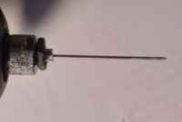 Практика показала можно вставить и закрепить иглу самого маленького диаметра, какую только возможно заточить под сверлышко. В работе приспособление удобное.